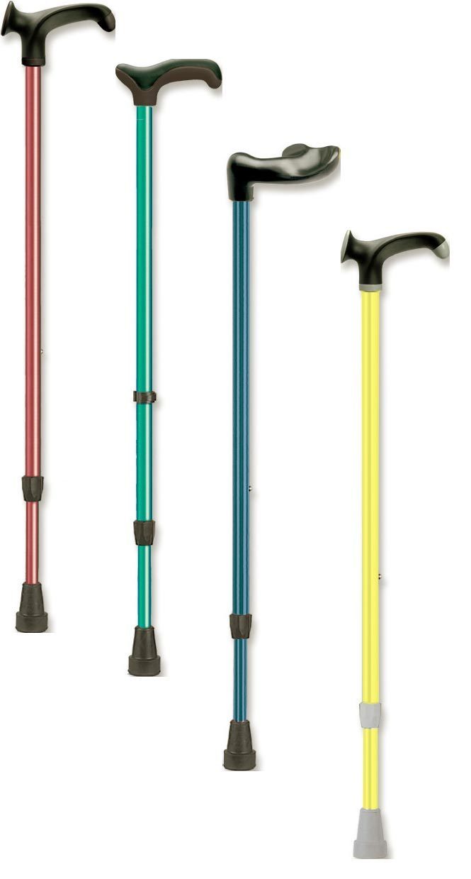 These light metal walking sticks are extremely light yet robust. With a choice of 3 handle grips, and 8 colour finishes, you can really find a stick to suit your needs and preferences. All sticks are adjustable in height from 31” to 38.5" (78-98 cm).